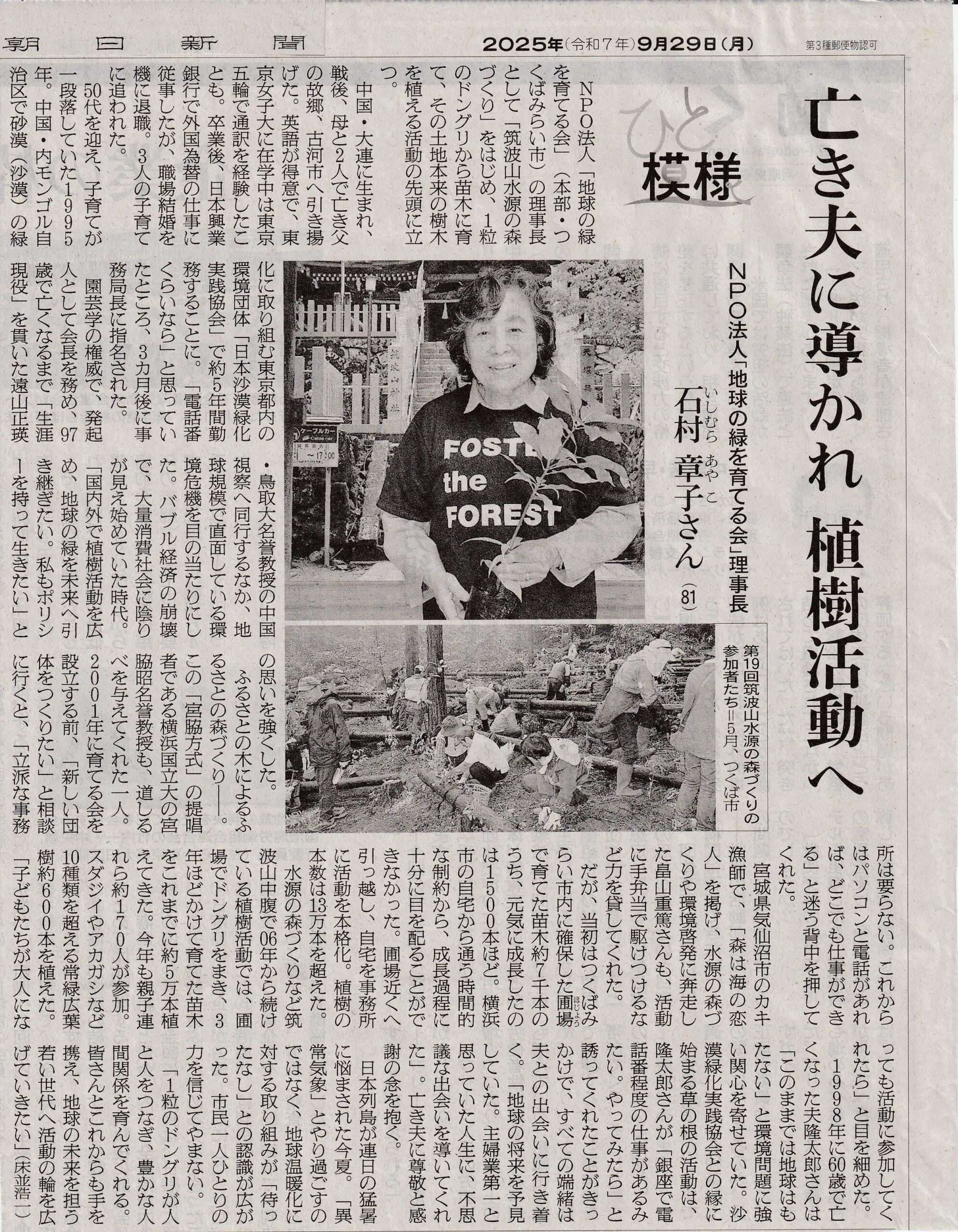 理事長が朝日新聞で紹介されました!!【2025年9月29日】